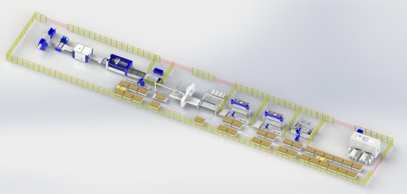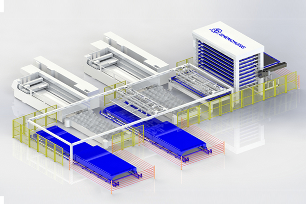 自動(dòng)化上下料系統(tǒng)+自動(dòng)切割系統(tǒng)又可以和前端的自動(dòng)料庫(kù)系統(tǒng)、后端的AGV物流系統(tǒng)、自動(dòng)折彎系統(tǒng)、自動(dòng)焊接系統(tǒng),乃至后續(xù)的表面處理系統(tǒng)結(jié)合成全自動(dòng)化的鈑金生產(chǎn)線。