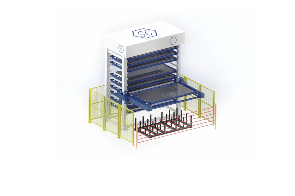 • 龍門梁式料庫靠龍門梁上的上下輸送板料入庫;